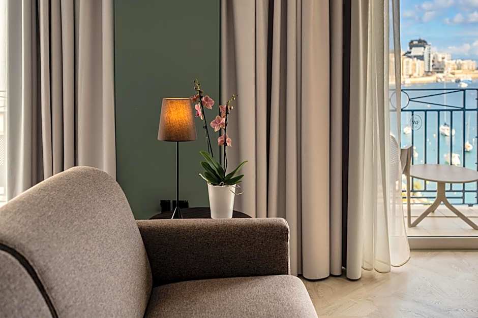 Air-conditioned room with balcony. Overlooking the harbor on Manoel Island.